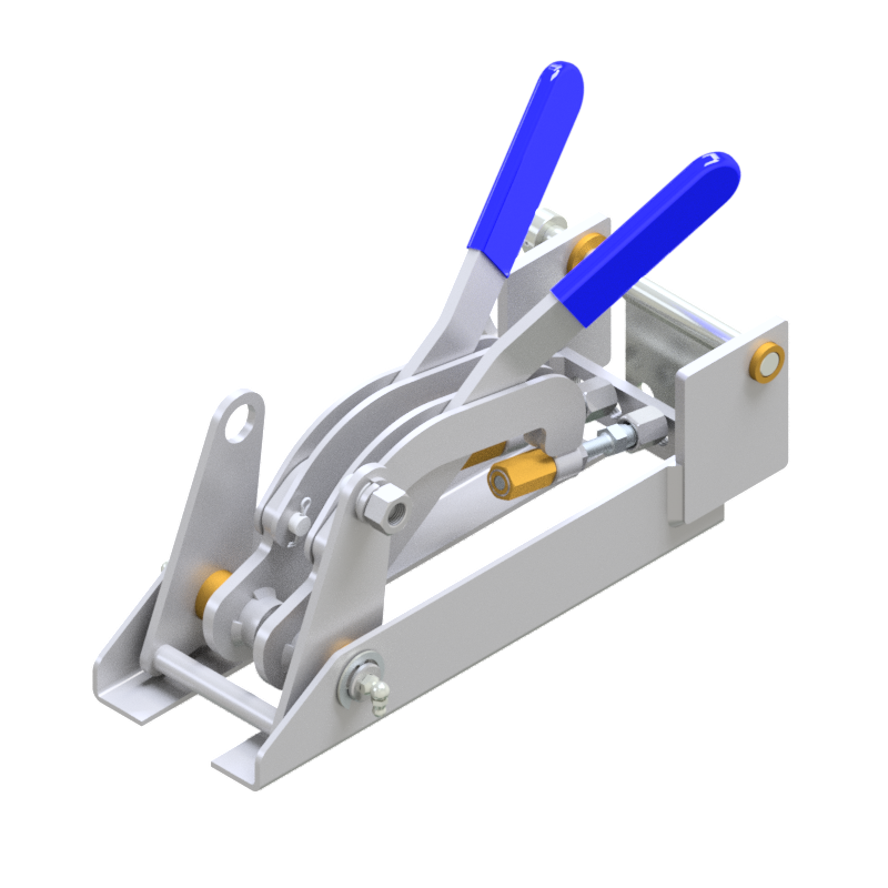 New design is more compact than comparable Universal or Deluxe models. Slotted mounting straps are available as an option to allow for replacement of Deluxe operators without drilling new mounting holes. Specify straps by adding suffix “001” to assembly number. Other mounting options available by contacting sales. Lubricated shaft and handle is standard. Grease fittings on both ends of shaft.