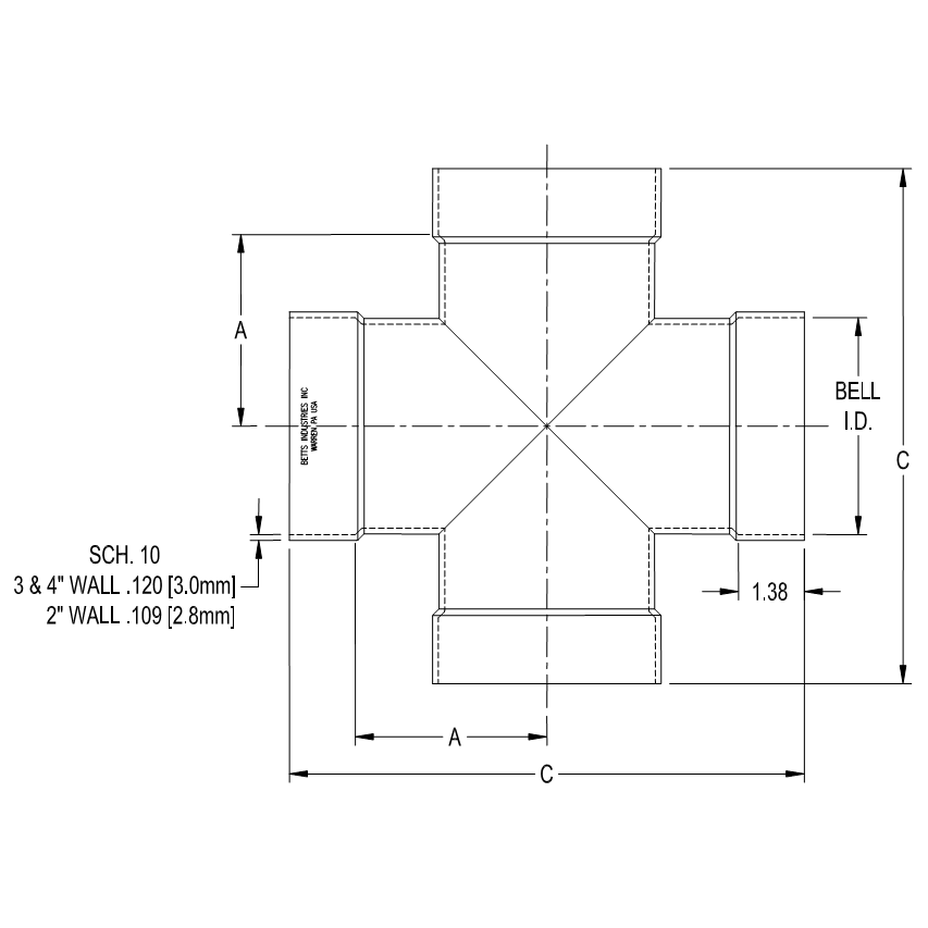 Betts welded construction belled crosses are designed for use on cargo tanks and satisfy a wide variety of piping needs. The belled cross offers multiple advantages over standard fittings. Significant reduction in joint preparation and fit-up time can be realized while the belled end allows for a fillet weld in place of a more difficult butt weld joint. Slight angular piping misalignments can be easily accommodated. 100% leak testing by Betts ensures no weld seam leaks.