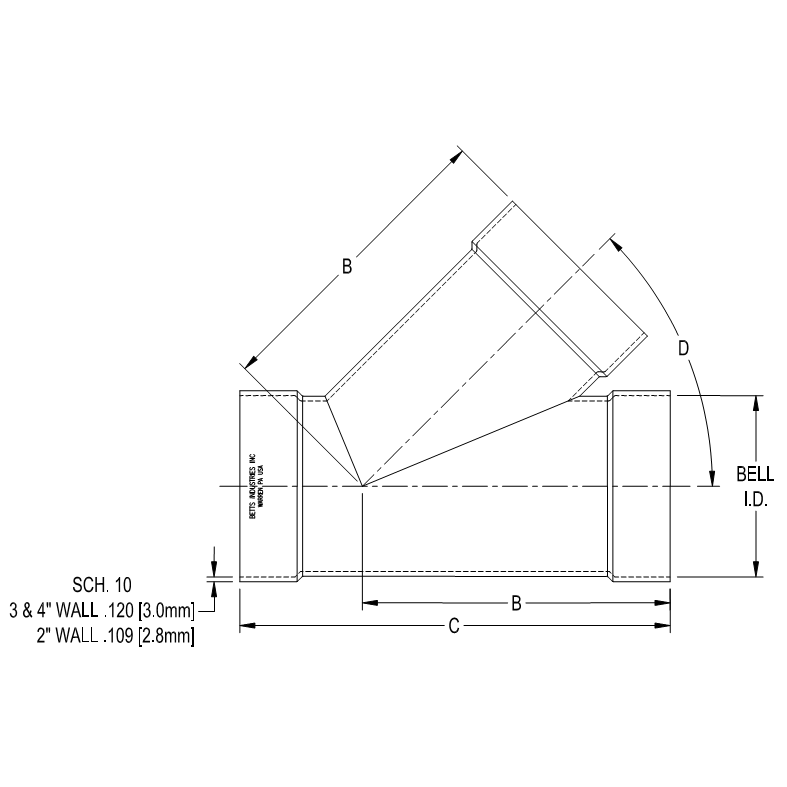 Betts welded construction belled laterals are designed for use on cargo tanks and satisfy a wide variety of piping needs. The belled lateral offers multiple advantages over standard fittings. Significant reduction in joint preparation and fit-up time can be realized while the belled end allows for a fillet weld in place of a more difficult butt weld joint. Slight angular piping misalignments can be easily accommodated. 100% leak testing by Betts ensures no weld seam leaks.