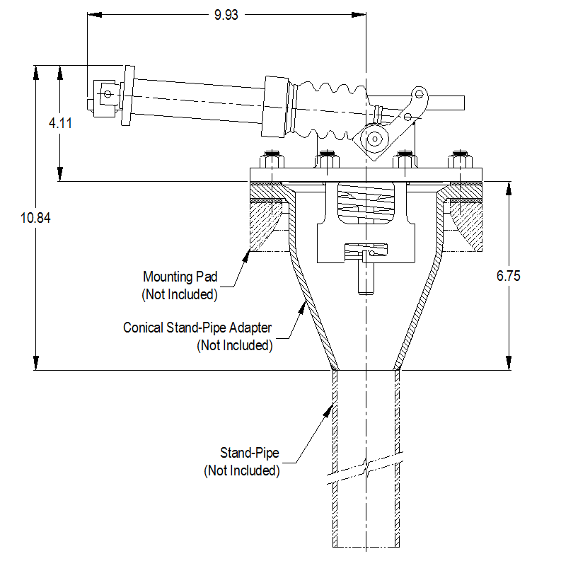 The 316 stainless conical stand-pipe adapter is mounted between the valve inlet flange and the sump flange and projects into the tank so that a stand-pipe can be welded in place. The adapter is supplied ready to fit-up with a 2” pipe, but the conical design allows it to be cut back to fit larger pipe sizes as well. Order adapter separately.