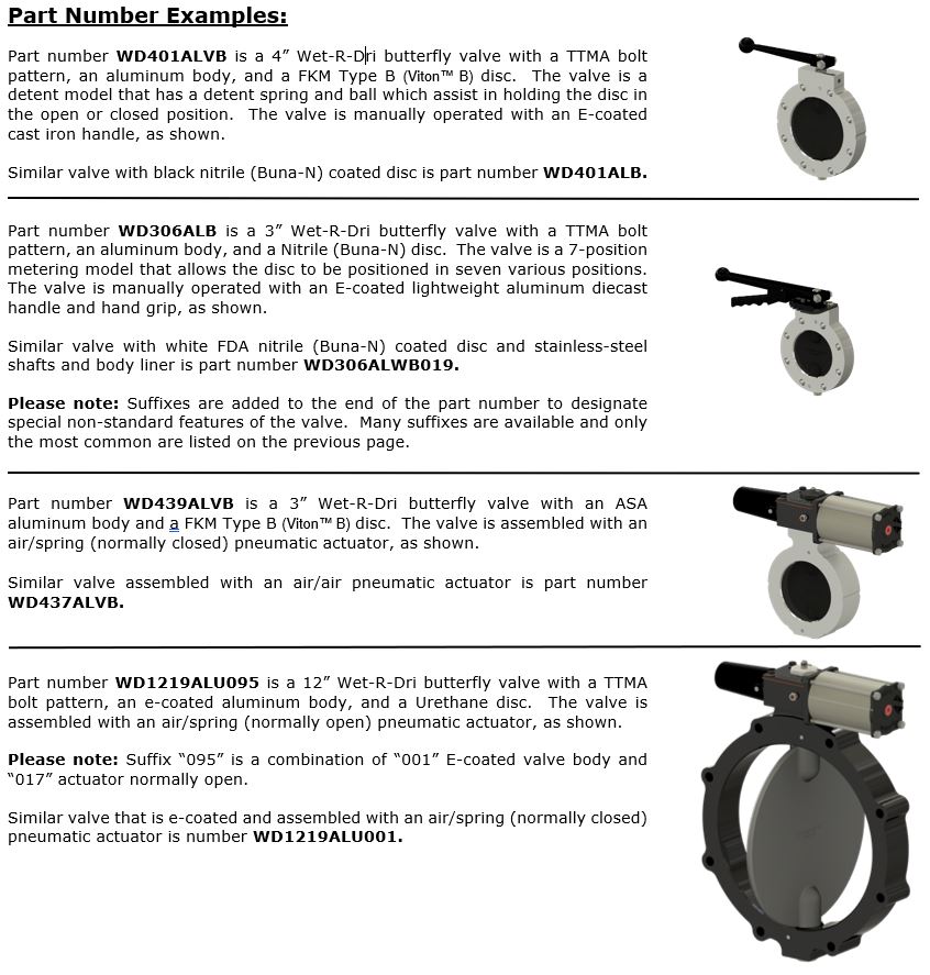 Wet-R-Dri Valve Cover Page and Part Number Code