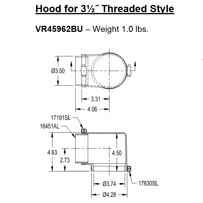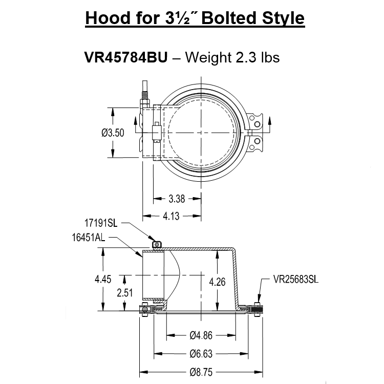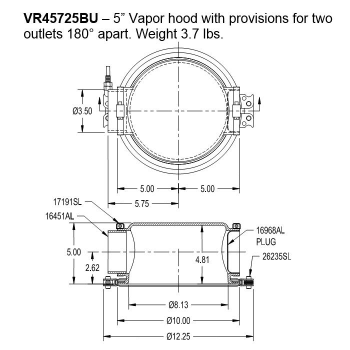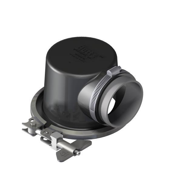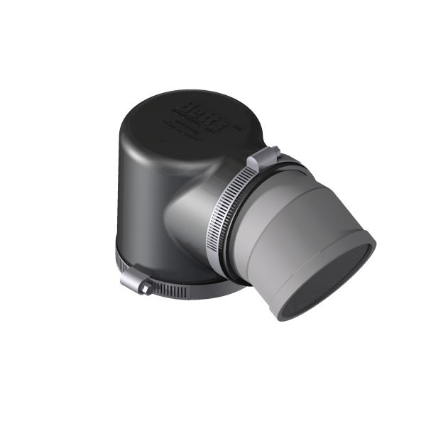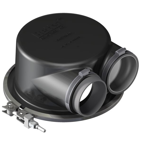 The Betts emission collection hood provides an economical means of connecting the positive vapor vent to the vapor rail. The hoods are made of ozone and ultraviolet resistant nitrile and are designed to collapse in case of rollover without adversely affecting the product retention of the cargo tank. The hoods for the 5” valve are provided with two outlets and one of them is plugged with an aluminum end cap. Hoods are available less the mounting clamp with suffix “001” added to the end of the assembly number.